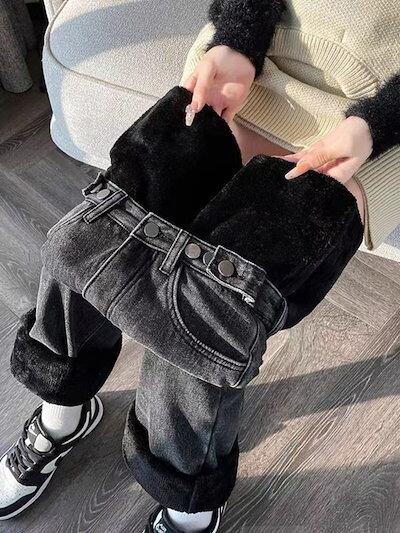 裏起毛 厚手 ハイウエスト ジーンズ 冬新しい ゆったり ストレート ワイドパンツ レディース カジュアル 百掛け デニム ロングパンツ