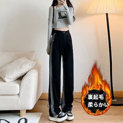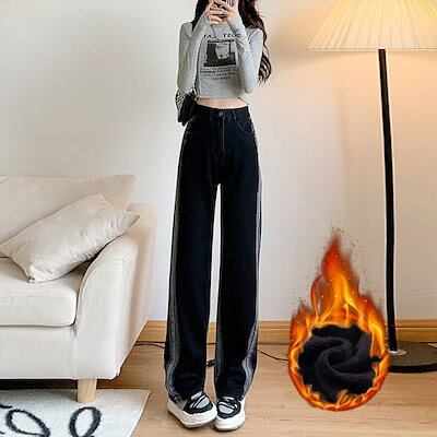 2024脚長効果! 厚手 裏起毛デニムパンツ ジーンズ レディース パンツ ワイドパンツ スキニー 裏起毛 韓国ファッション ズボン秋冬