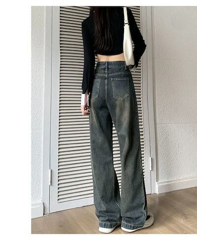 裏起毛パンツグレージーンズレトロプリーツワイドパンツジーンズレディースゆったりハイウエスト着痩せ秋 冬ストレートジーンズひんやりボトムス