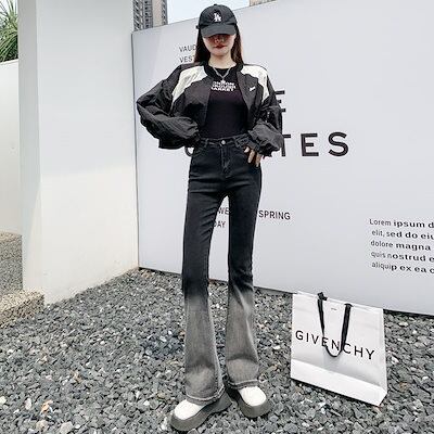 韓国風レディース ハイウエスト ジーンズ美脚 着痩せ 春 夏 秋 冬 四季マイクロパンタロン