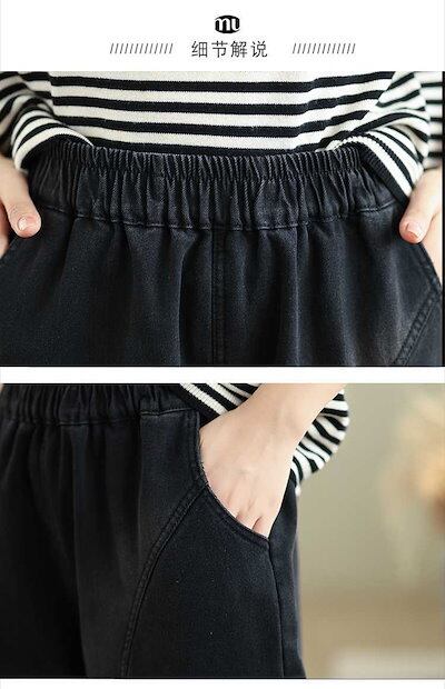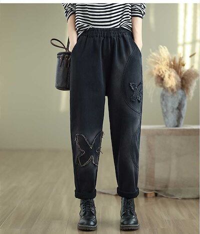 「ファットガール」 2024冬新品 裏起毛 デニムパンツ テーパードパンツ 蝶柄刺繍 大きいサイズ 体型カバー 厚手 保温 レディース ロングパンツ ジーンズ メガ割
