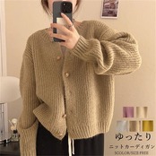 カーディガン レディース ニットカーディガン 長袖 厚手 セーター 無地 シングル アウター きれいめ シンプル ゆったり 体型カバー 大人 キレイめ 秋冬 韓国ファッション