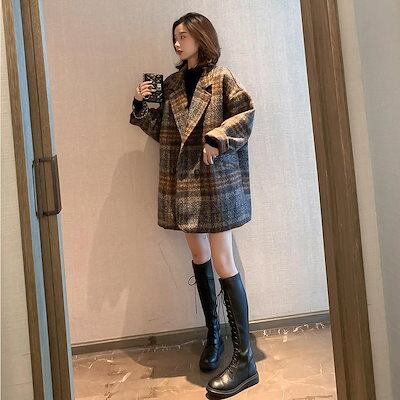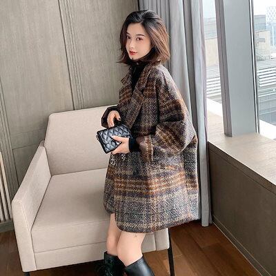 大人気! チェスターコート 冬アウター 韓国ファッション 秋冬 コート レディース ウールコート ラシャ チェック 中綿 チェスターコート