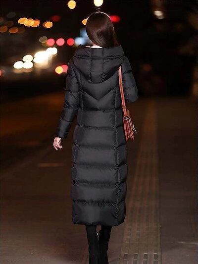大人気! レディース秋冬韓国風スリムフィットロング丈ダウンコート 厚手フード付き万能ダウンジャケット ブラック作業服アウター ダウンジャケット コート