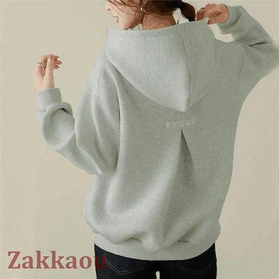 パーカー バックパール レディース 韓国 シンプル 秋冬 フード付き チュニック プルオーバー ゆったり バックタック アウター 長袖 カジュアル