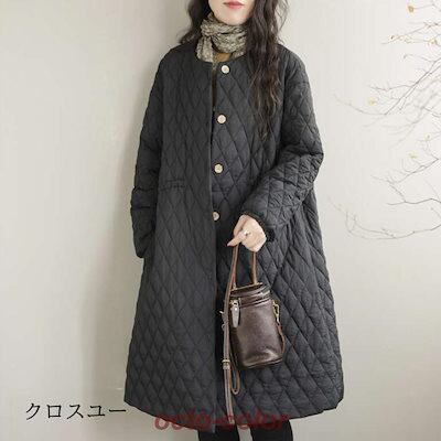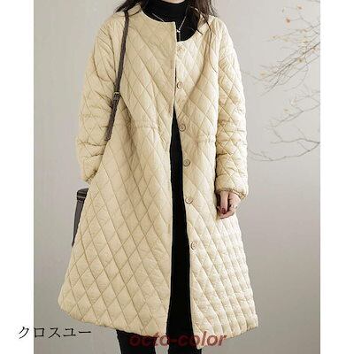 ウエスト調節可 防寒 レディース 軽量 秋冬 人气新作 コート ロングコート 韓国ファッションキルティングコート 大きいサイズ アウター 中綿コート 長袖 ノーカラー