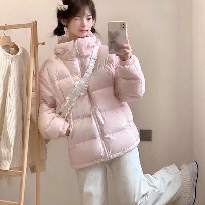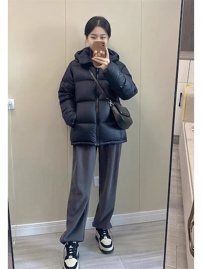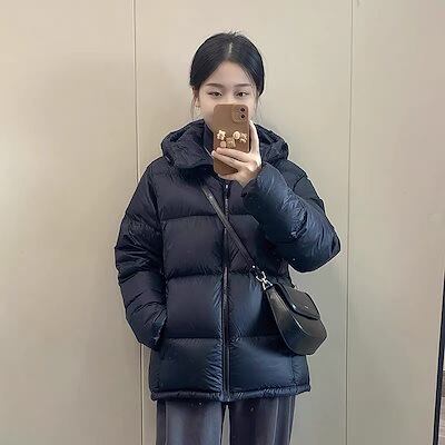 2025年冬 新作 ブラック 厚手 フード付き コットンパーカー 韓国風 大人気 上品 小柄 対応 ショート丈 レディース 防寒アウター