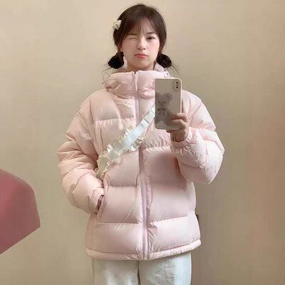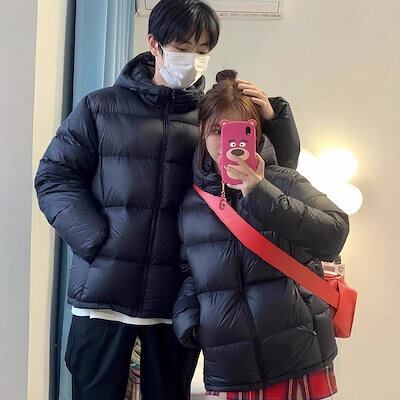2025年冬 新作 ブラック 厚手 フード付き コットンパーカー 韓国風 新作登場 小柄 対応 ショート丈 レディース 防寒アウター