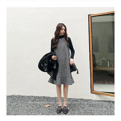 2点セット ニットワンピース レディース セットアップ スカート40代 秋 冬 チェック柄 セーター 長袖トップス 韓国風 通勤 OL オシャレ 上品 体型カバー