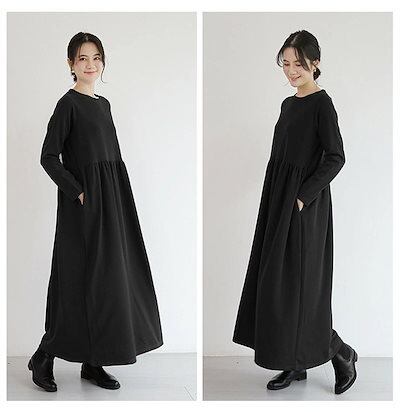 ワンピース マキシワンピース 長袖 レディース 秋冬 ゆったり マキシワンピ ロングワンピース ワンピ ロングワンピ 長袖ワンピース フレア ワンピ ルームウェア ロング丈 タック入り 体型カバー ポ