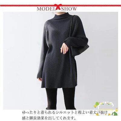 ニットワンピース ニット セーター トップス レディース モックネック 長袖 秋 冬 チュニック 秋冬 無地 プチハイネック ゆったり ロングニット