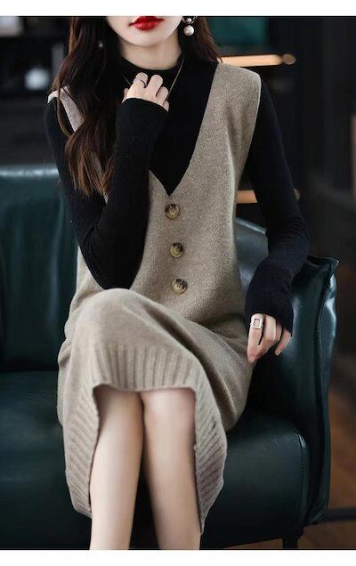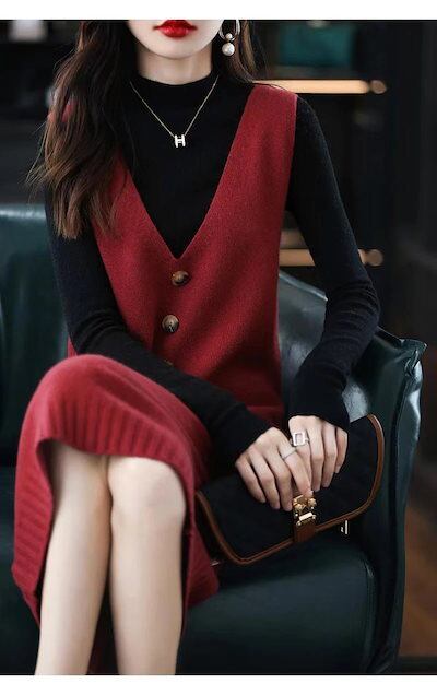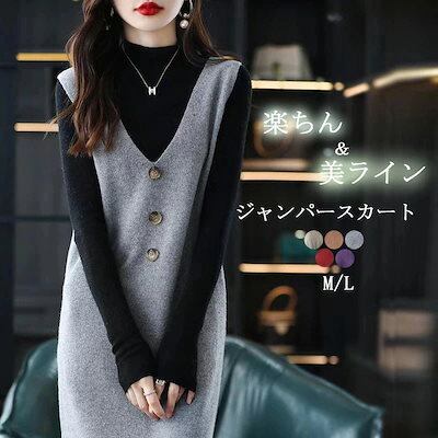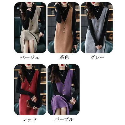 ワンピース ロングワンピース ニットワンピース レディース ジャンパースカート 秋冬 ベスト ロング Aライン ロングベスト ノースリーブ ニットベスト ニット ゆったり Vネック ロングワンピ マキ