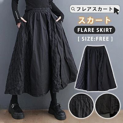 【9月新作】スカート ロング レディース 黒 フレアスカート フレア バルーンスカート ボトムス 春 秋 冬 ロングスカート ミモレ丈 シンプル きれいめ 総柄 魚の鱗模様 大人 可愛い ブラック カ