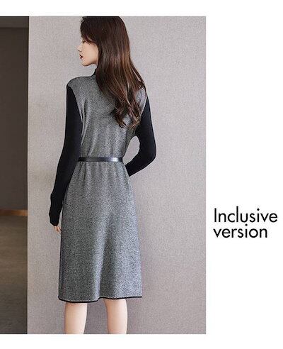 【9月新作】ニットワンピース 重ね着風 ワンピース 着痩せワンピース 膝丈 レディース ワンピース ニット ワンピース 秋冬 春 長袖