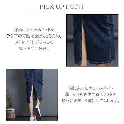 【9月新作】デニムスカート ロング 膝丈 スリット レディース 秋冬 タイト ストレッチ オールシーズン ロングスカート きれいめ ミモレ丈 ロング丈 着痩せ
