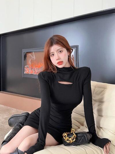 【9月新作】ワンピース 韓国 冬 ワンピース 秋冬 ワンピース ドレス レディース ワンピース スリムなハイネックドレス 韓国版長袖ヒップドレス 秋冬新作 2024