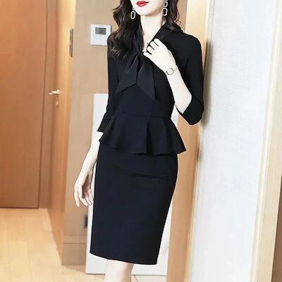 フォーマル ワンピース 卒業式スーツ 一体型セットアップ リボン ボウタイ ひざ丈スカート フレアワンピース ドレス 卒業式 入学式 入園式 レディース 結婚式 二次会 ママ 40代 30代 母 長袖