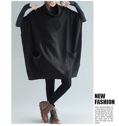 チュニック ドルマン パーカー トップス ゆったり チュニックワンピース レディース 秋 ひざ丈 タートルネック ハイネック 体型カバー 大きいサイズ プルオーバー 秋アウター 上着 コーデ レイヤー