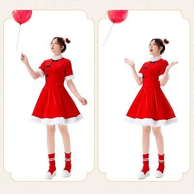 【祝日おめでとう!】サンタ/クリスマス/コスプレ/衣装/チャイナ風/コスチューム/着ぐるみ/パジャマ/ルームウェア/ワンピース/ひざ丈/女性/レディース/ケープ/可愛い/暖かい/ふわふわ/パーティー/