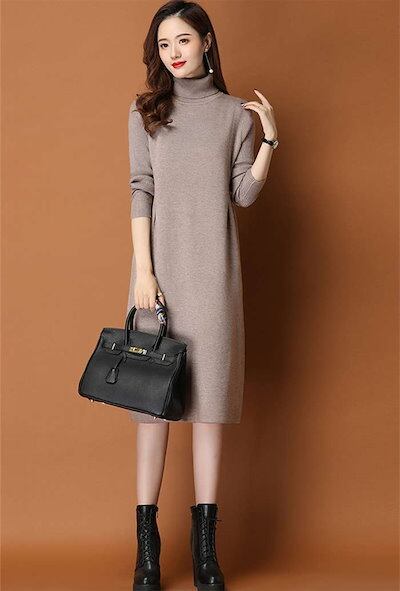 ワンピース レディース 秋冬 ニットワンピース ひざ丈 ワンピース ニット ニットワンピ 大きいサイズ 膝丈 ハイネック 長袖 無地 体型カバー オシャレ チュニック カットソー 20代 30代 40