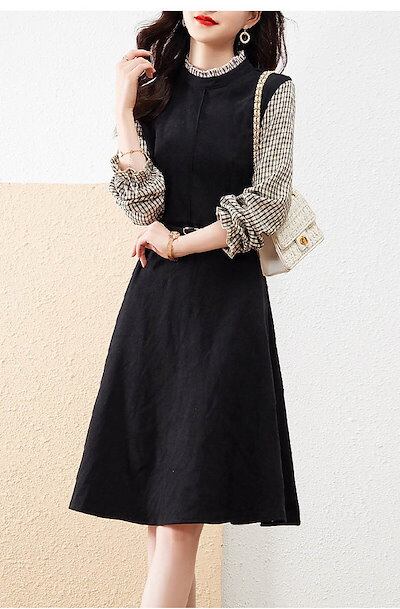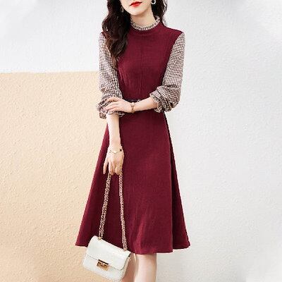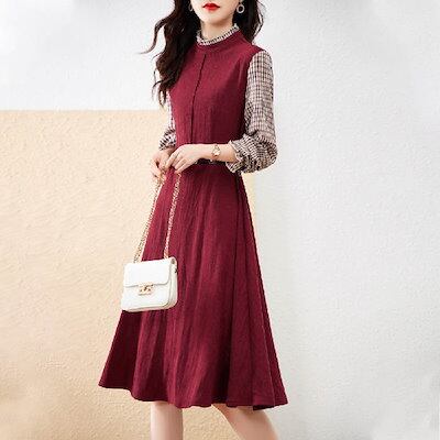 ワンピース 長袖 レディース 春 秋 冬 切り替え ワンピース ひざ丈 きれいめ 大人可愛い カジュアル 膝丈 ワンピース 大きいサイズ 体型カバー きれいめ 着痩せ シンプル 通学 通勤 OL ベル