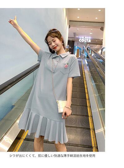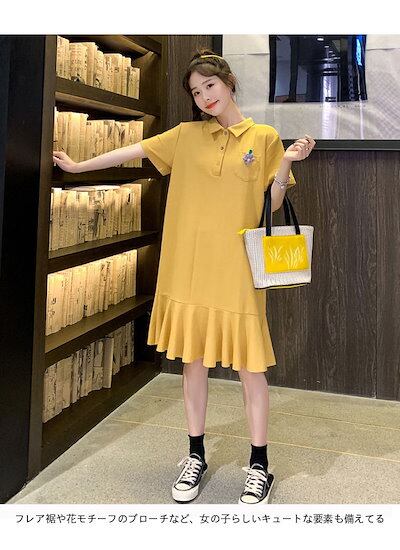 【急速出荷】ワンピース 半袖 レディース ポロシャツワンピース ゆったり Tシャツワンピ ミディアム丈 夏 半袖ワンピース ポロシャツワンピ 可愛い フレア裾 ひざ丈ワンピース