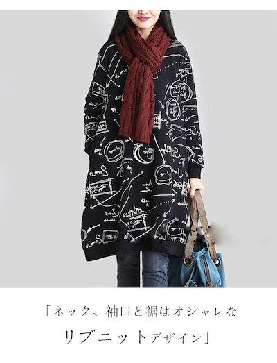 チュニック ワンピース レディース ひざ丈 膝丈 チュニックワンピース 長袖 ラウンドネック 総柄 体型カバー 着痩せ 大きいサイズ オーバーサイズ プルオーバー カジュアル 個性的 リブニット スエ