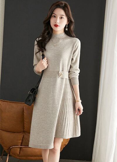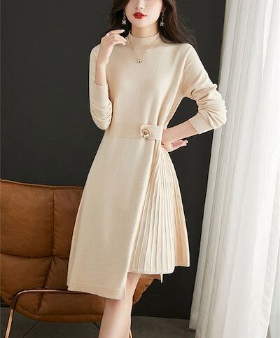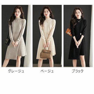 ニットワンピース 秋冬 レディース ワンピース ロングワンピース 大きいサイズ きれいめ おしゃれ 不規則裾 Aライン プリーツワンピース フォーマル ひざ丈 aラインワンピース 冬 秋 ニットワンピ