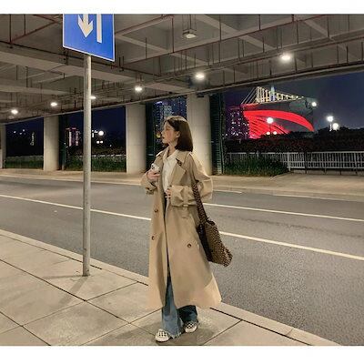 レディースウインドブレーカー韓国風小さいミディアム丈ゆったりトレンディコート気質英国風コート