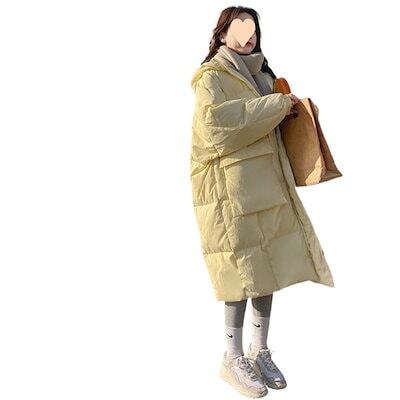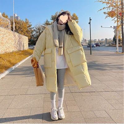 ミルクイエローダウンコットンコートレディースミドル丈2025韓国風ルーズコットンコート厚く暖かいジャケットトレンディ