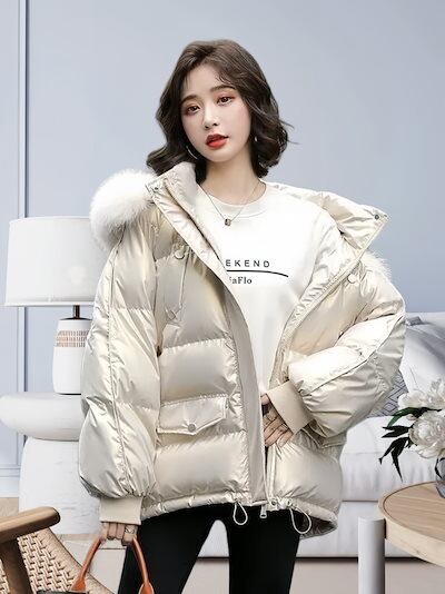 ノーウォッシュダウンジャケットレディースショート2025韓国スタイルファッション光沢のあるコットンジャケットゆったり暖かいジャケットトレンド