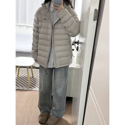 ダックダウンジャケット リブ 軽い 薄手 ダウンジャケット レディース ショート丈 ゆったり 韓国風 カジュアル フード付き 暖かい ライト