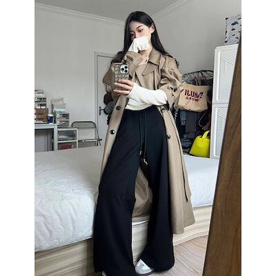 グレー トレンチコート レディース ミドル丈 2024新作 初 韓国風 小さめ 英国風コート