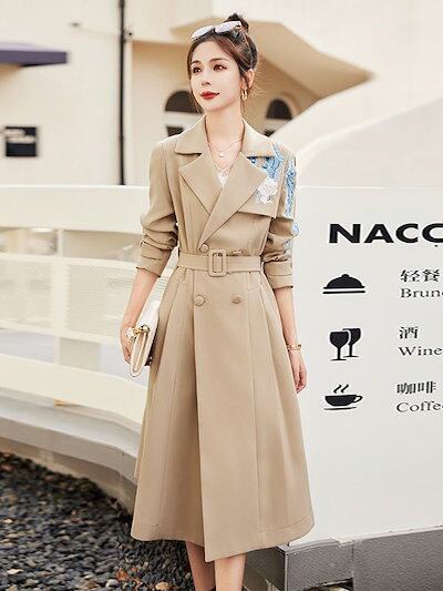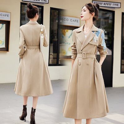 既製レディース新作韓国風刺繍フラワーロングコートレディースウインドブレーカーhf2382