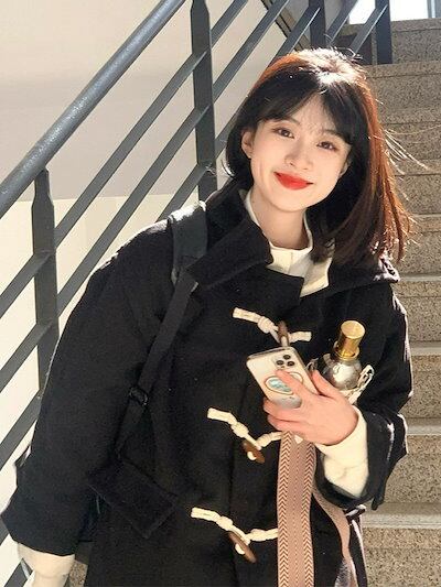 ロング ブラック ホーンボタン ウールコート レディース ウールコート 2024新作 ヘボン風 韓国風