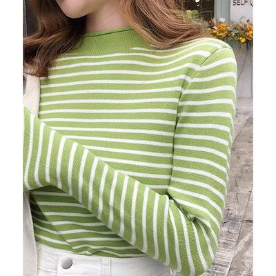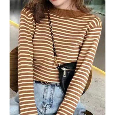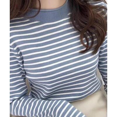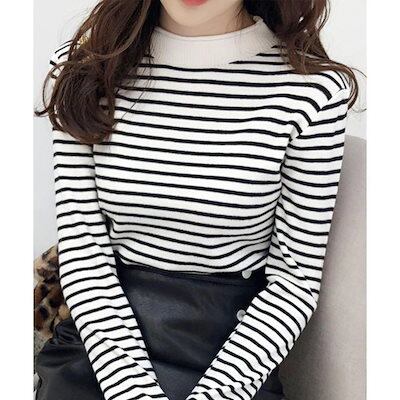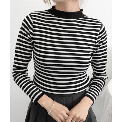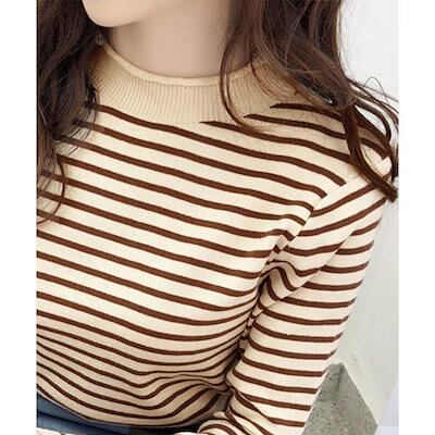 秋 冬 ファッションニット トップス レディース ボーダー柄ニットロールネックプルオーバー 韓国