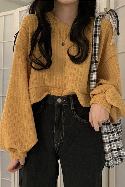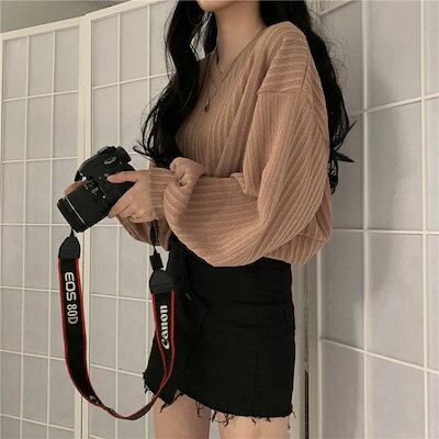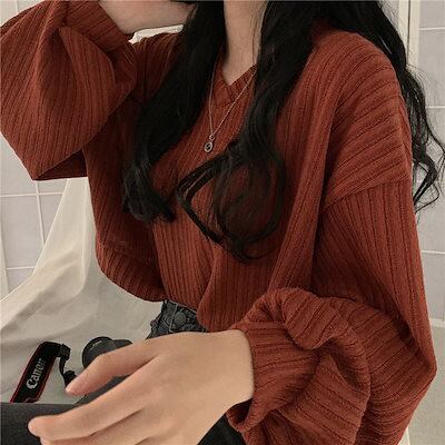 秋 冬 ファッションニット トップス レディース ニットゆったりスウェットニットベスト Vネック ショート丈 長袖ニット トップス セーター 韓国