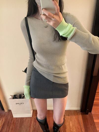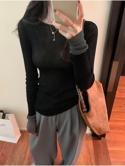 秋 冬 ファッションニット トップス レディース ベーシックニット 長袖 色の衝突 ニット ジャンパー レディース 薄手 ボトムシャツ 韓国