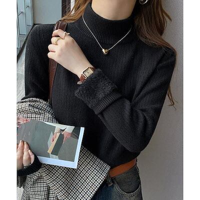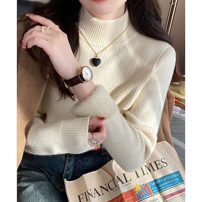 秋 冬 ファッションニット トップス レディース ニットトップス 裏起毛 ハイネック 厚手 韓国