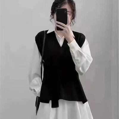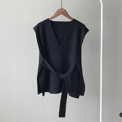 人気なリブニット ベーシックニット カシミヤタッチ秋 無地ニットベストレディース 百掛けセータージレ 韓国ファッションゆったりニットベスト