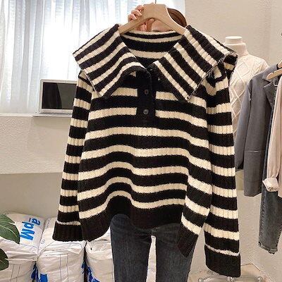 人気なリブニット ベーシックニット ストライプ ニットトップス 秋冬 ゆったり百掛け セーター レディース 韓国ファッション着痩せ 暖かい ニットセーター