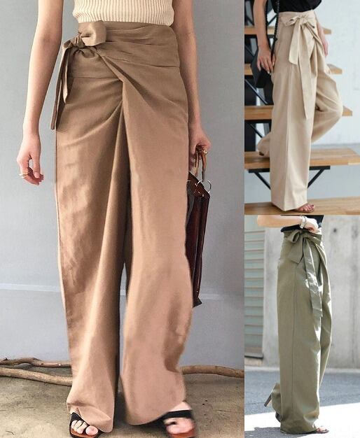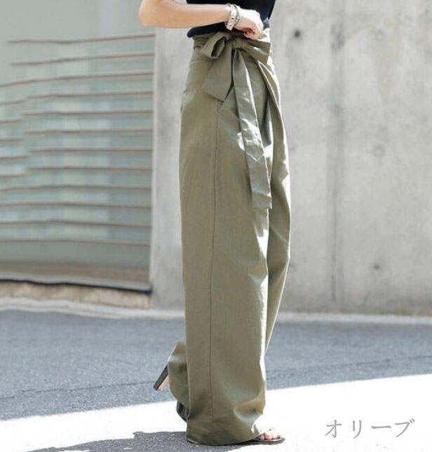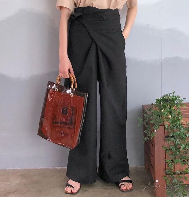 全6色 パンツ ハイウエスト 切り替え 体型カバー 着痩せ 無地 シンプル