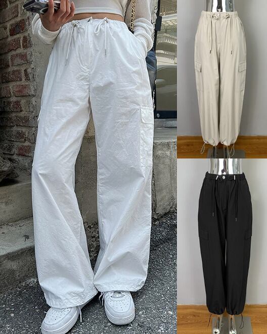 全3色 ワイド バギーパンツ 切り替え 体型カバー 着痩せ シンプル カジュアル
