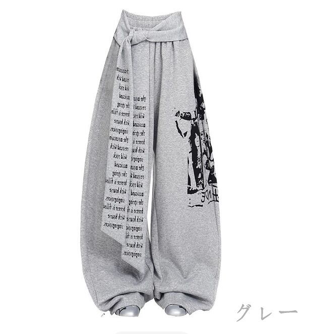 全2色 ワイド バギーパンツ プリント 切り替え バイカラー 体型カバー 着痩せ シンプル