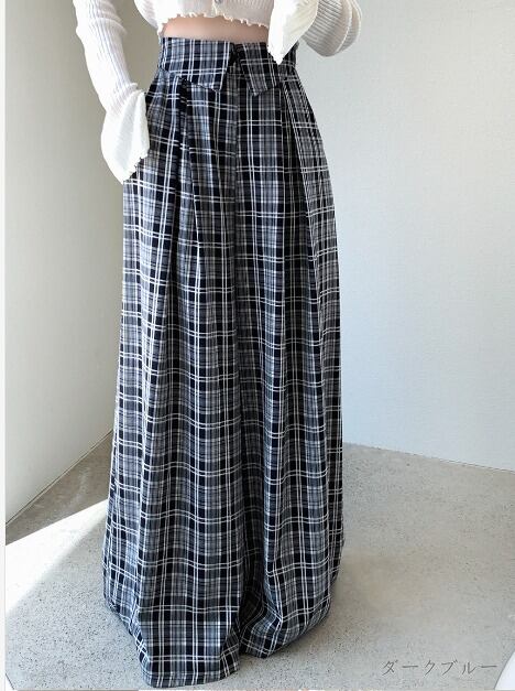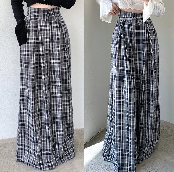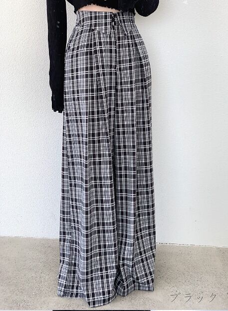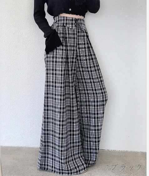 全2色 ワイド バギーパンツ 切り替え バイカラー 体型カバー 着痩せ チェック柄 カジュアル