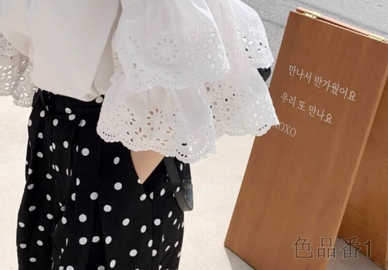 ワイド バギーパンツ 切り替え バイカラー 体型カバー 着痩せ ドット柄 シンプル カジュアル
