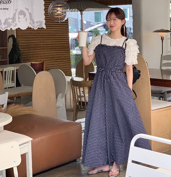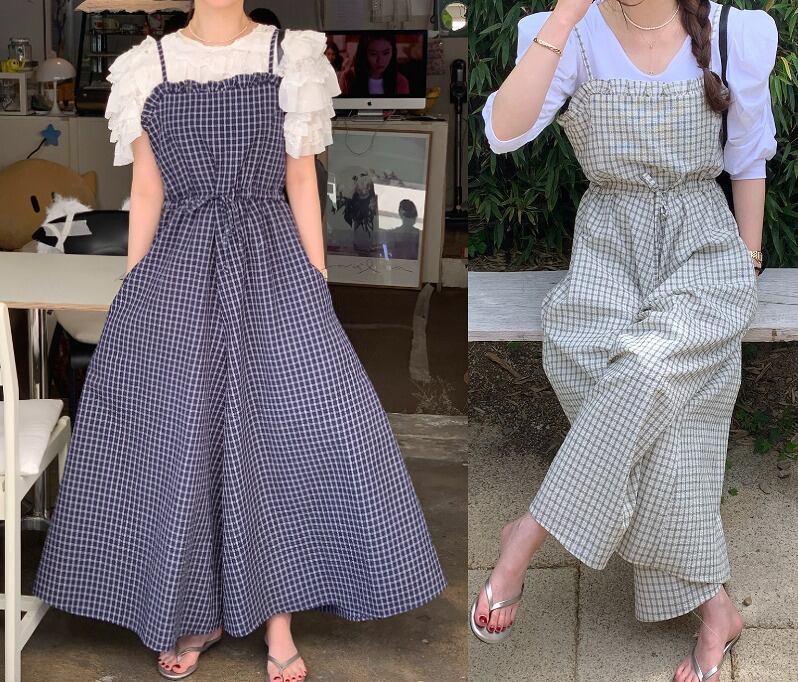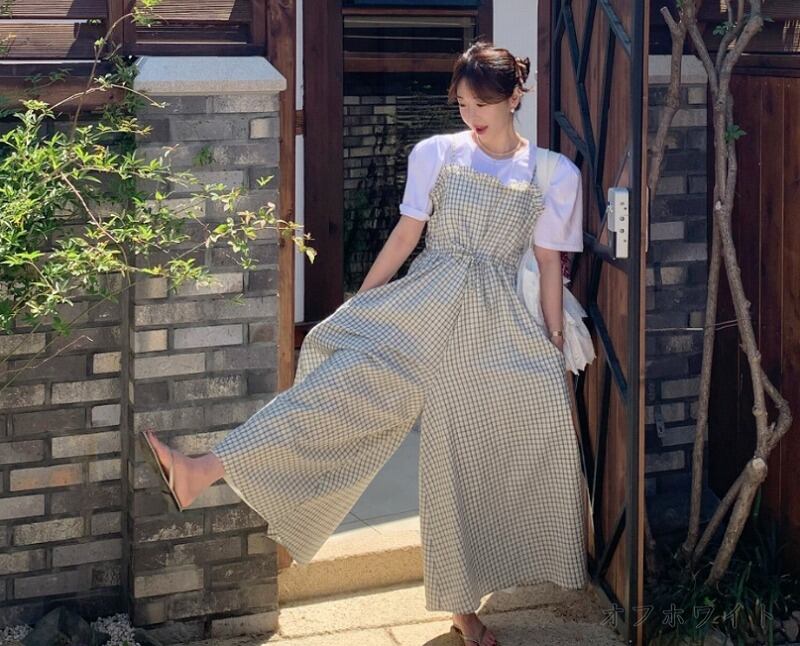 全2色 オールインワン オーバーオール 切り替え バイカラー 体型カバー 着痩せ ノースリーブ カジュアル