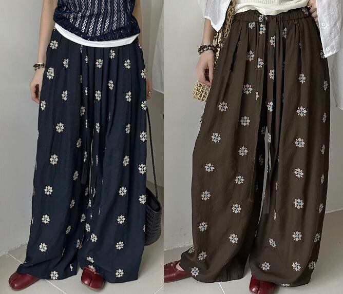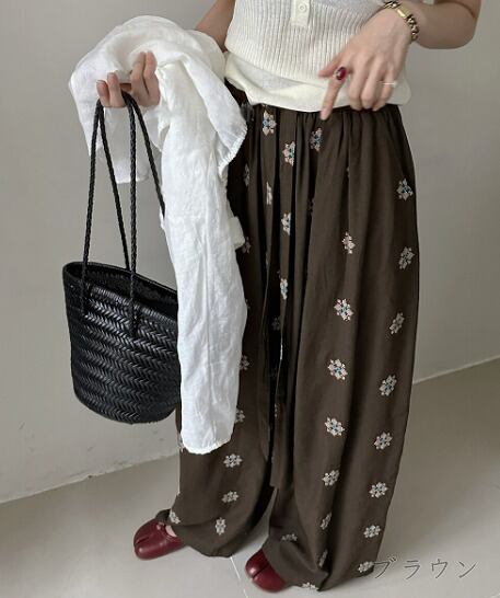 全2色 ワイド バギーパンツ 切り替え バイカラー 体型カバー 着痩せ カジュアル