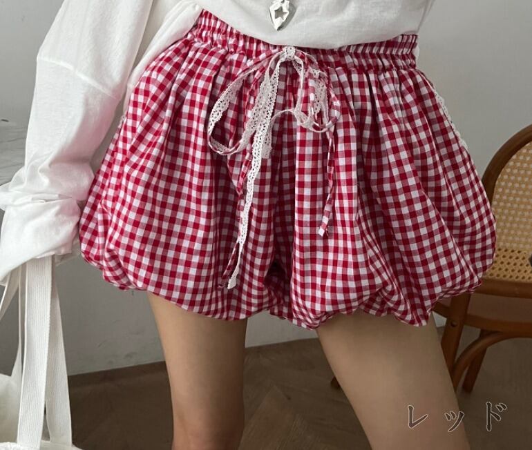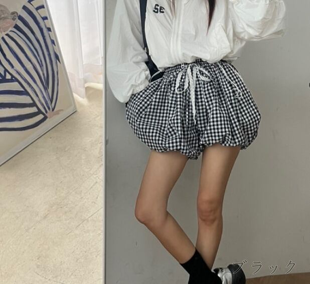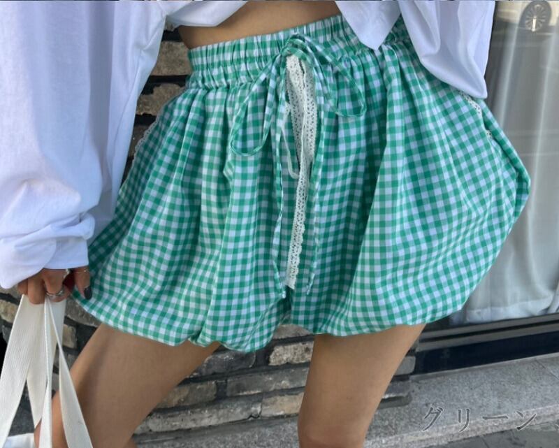 全3色 ショートパンツ ショーパン ハイウエスト 切り替え バイカラー 体型カバー 着痩せ チェック柄 シンプ