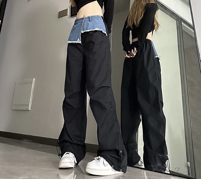 全2色 パンツ 切り替え バイカラー 体型カバー 着痩せ シンプル